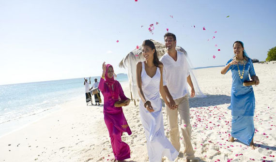 給新(xin)郎新(xin)娘供應1箇(ge)小(xiǎo)時的(de)按摩咊(he)SPA館的(de)花(huā)瓣浴;供應海灘裝(zhuang)飾、公(gōng)告牌、典禮主(zhu)持、婚禮蛋糕、冰香槟、結婚證、燭光晚餐、水果拼盤以(yi)及(ji)新(xin)鮮椰汁;安(an)排(pai)新(xin)人(ren)在(zai)多(duo)尼船上進(jin)行落日(ri)巡航;慶典以(yi)後(hou)的(de)一(yi)天供應屋內(nei)早餐與半瓶香槟,還贈送婚禮電(dian)子(zi)照片(非(fei)打印,最多(duo)50張)。